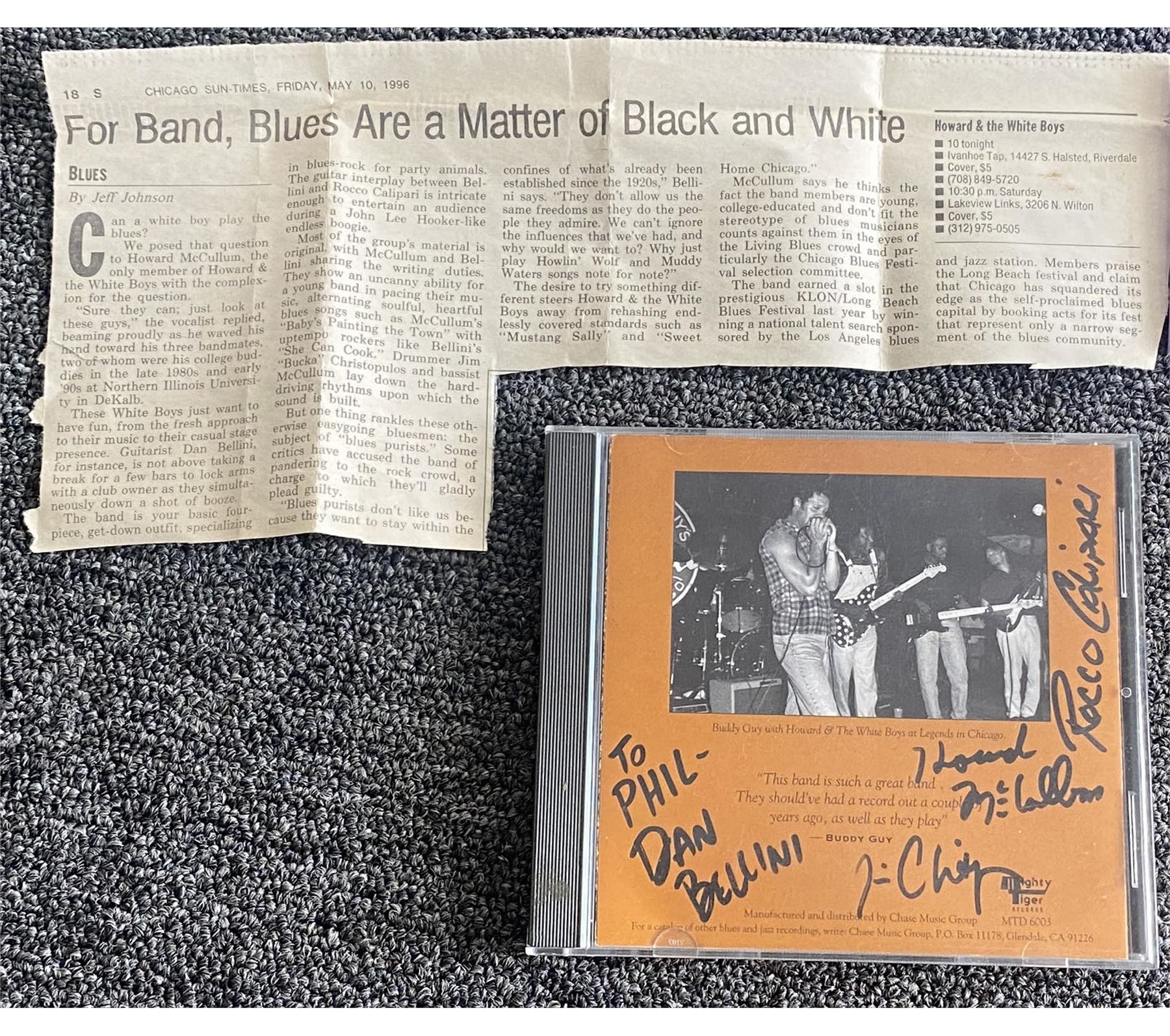 Howard & The White Boys signed CD autographed by Jim Christopulos, Howard McCullum, Rocco Calipari, and Dan Bellini with newspaper clipping. CD included. 6x5 inches