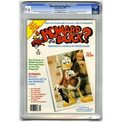 <B>Howard the Duck #1 (Marvel, 1979) CGC NM+ 9.6 Off-white to white pages.</B></I> Kidney Lady appearance. Gary Hallgren cover. Michael Golden, Gene Colan, Bob McLeod, and Klaus Janson art. Peter Ledger frontispiece. Overstreet 2007 NM- 9.2 value = $10. CGC census 9/07: 3 in 9.6, 1 higher.<BR><BR><b>Shipping:</b> Comics - Slabbed (certified) (<a target="_blank" href="http://www.heritageauctions.com/common/shipping.php">view shipping information</a>)