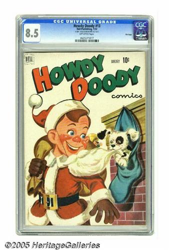 <B>Howdy Doody #13 File Copy (Dell, 1952) CGC VF+ 8.5 Off-white pages.</B></I> Christmas cover. Overstreet 2005 VF 8.0 value = $97; VF/NM 9.0 value = $149. CGC census 3/05: 1 in 8.5, 1 higher. <I>From the Random House Archives.</B></I>