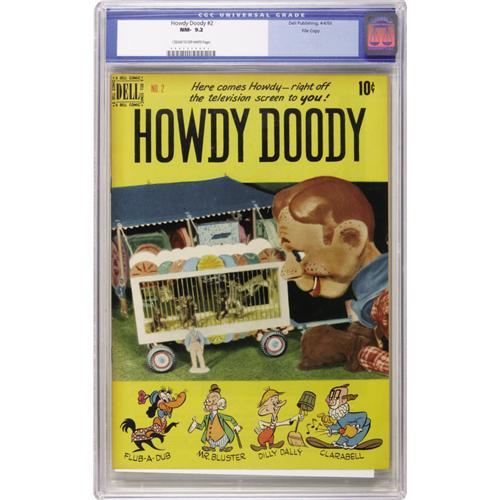 <B>Howdy Doody #2 File Copy (Dell, 1950) CGC NM- 9.2 Cream to off-white pages.</B></I> This series was the first TV comic, and this is one of only a few copies of this issue certified by CGC to date. Overstreet 2006 NM- 9.2 value = $700. CGC census 10/06: 1 in 9.2, 1 higher.<BR><BR><b>Shipping:</b> Slabbed Comic (<a target="_blank" href="http://www.heritageauctions.com/common/shipping.php">view shipping information</a>)
