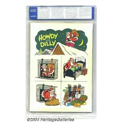 <B>Howdy Doody #26 and 33 Group - File Copies (Dell, 1954-55) CGC NM 9.4 Off-white pages.</B></I> Ok, here's a pair of high-grade gems for the Peanut Gallery: <B>Howdy Doody</B></I> #26 and 33, both graded CGC NM 9.4 with off-white pages. And to make it even better, they're both file copies! To date, no other copies of either issue have been graded higher by CGC. Overstreet 2004 NM- 9.2 value for group = $310. 2 Comic Books <BR><BR><B>Important notice:</B> Heritage usually auctions material at the rate of 200-250 lots per hour. On some occasions eBay Live bid software or the Internet may not be able to keep up with the pace of the auction. We recommend placing a realistic absentee bid now as insurance to avoid disappointment. Occasionally the auctioneer may eliminate or reject an eBay Live bid, and the auctioneer may also reopen a lot after the close of the eBay live bidding (usually because we missed an audience bid), and may reject your bid even if it shows you as the winning bidder. By bidding via eBay Live, you agree that Heritage may award the lot to another bidder at its sole discretion under the circumstances described above or any other reasonable circumstances. Since eBay bids are not shown to us until we open the lot on the floor, we treat those bids just like floor bids. In most cases the floor responds before the eBay bid is presented to us, due to Internet lag time, so for consistency we have made it a policy that floor bids are always considered first over tie eBay live bids. Also please note that all Heritage lots purchased through eBay Live carry a 20% Buyer's Premium. Please make sure you read the Terms and Conditions before you bid.