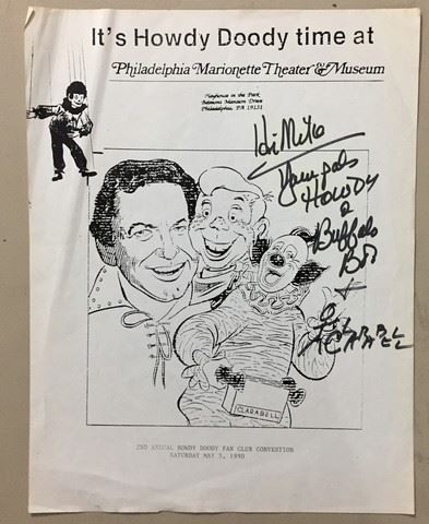 Autographed flyer advertising "It's Howdy Doody Time" 2nd Annual Fan Club Convention which took place on May 5, 1990 at the Philadelphia Marionette Theater and Museum.