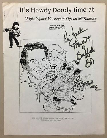 Autographed flyer advertising "It's Howdy Doody Time" 2nd Annual Fan Club Convention which took place on May 5, 1990 at the Philadelphia Marionette Theater and Museum.