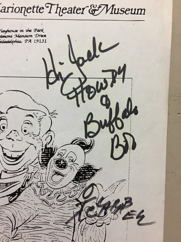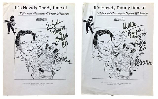 Autographed flyer advertising "It's Howdy Doody Time" 2nd Annual Fan Club Convention which took place on May 5, 1990 at the Philadelphia Marionette Theater and Museum.