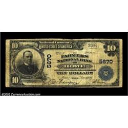 Howe, TX - $10 1902 Plain Back Fr. 633 The Farmers NB Ch. # 5670A true Texas rarity, with notes from this Grayson County bank missing from both the Everson and Ivy collections. In fact, the only offering of any note from this community during the past sixty years came in the Irish collection sale of 1997, where a stained and quite ugly blue seal which was the best note that J.L. Irish could find from here fetched $880. This piece is markedly superior, with most of the wear visible only on the reverse. Pen signed About Fine, a great note likely to see bidding reach or exceed... Important notice: We expect to be auctioning lots at the rate of 200-250 per hour. Sometimes eBay Premier live bid software cannot keep up with that pace, so we strongly recommend that you place a realistic proxy bid now as insurance to avoid disappointment. Also please note that all Heritage/CAA lots purchased through eBay Premier carry a 20% Buyer's Premium. Please make sure you read the Terms and Conditions.