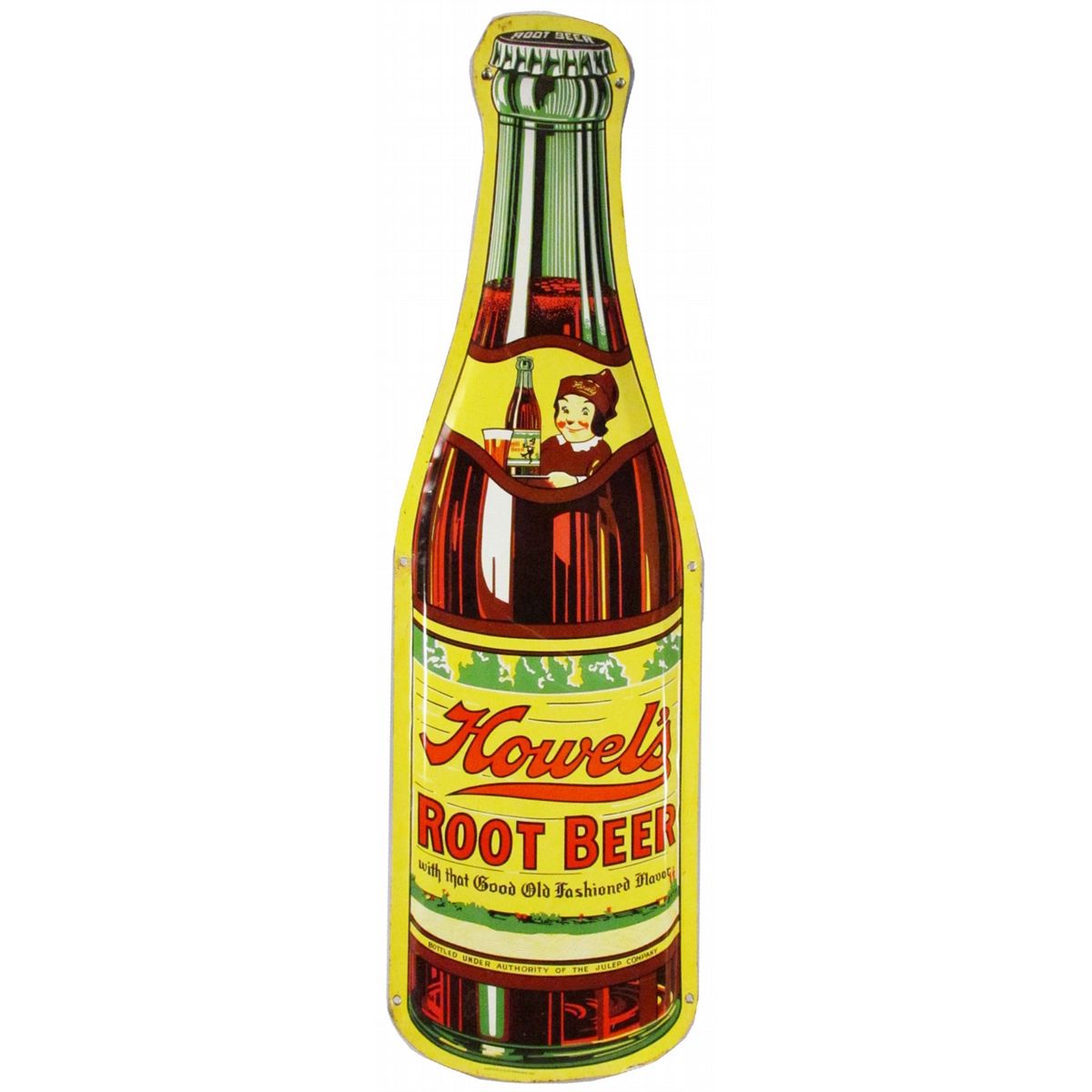Howel's Root Beer Embossed Die Cut Tin Sign. Very good condition. 8 1/2 X 29 1/2 inches.