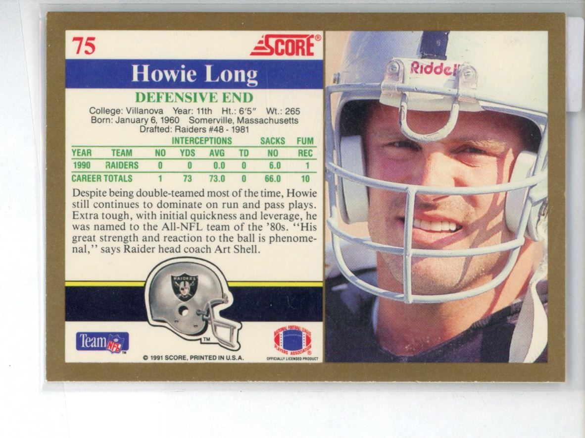 Howie Long, Defensive End, Oakland Raiders, 1991 Score. Mint.