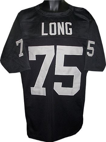 Howie Long collected 91½ sacks during his career. His career high was in 1983 with 13 sacks, including a career-high 5 against the Washington Redskins on October 2, 1983. He also intercepted 2 passes and recovered 10 fumbles during his 13-year career. At the time of his retirement, he was the last player still with the team who had been a Raider before the franchise moved to Los Angeles. He won a Super Bowl title with the Raiders in 1984 (following the 1983 season). Long's signature defensive move was the "rip," which employed a quick, uppercut-like motion designed to break an opposing blocker's grip.This is a Howie Long Oakland Raiders unsigned Black TB unlicensed custom-prostyle jersey with twill stitched nameplate and numbers. perfect for autograph or to wear! Size XL