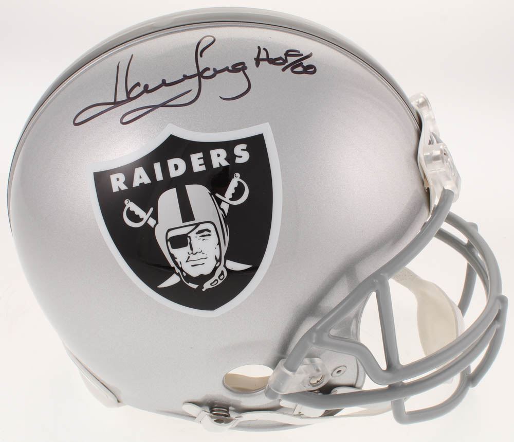 Riddell Oakland Raiders full-size authentic on-field helmet. Hand-signed in black felt-tip pen by Howie Long (HOF).