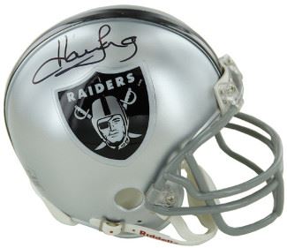 Howie Long collected 91½ sacks during his career. His career high was in 1983 with 13 sacks, including a career-high 5 against the Washington Redskins on October 2, 1983. He also intercepted 2 passes and recovered 10 fumbles during his 13-year career. At the time of his retirement, he was the last player still with the team who had been a Raider before the franchise moved to Los Angeles. He won a Super Bowl title with the Raiders in 1984 (following the 1983 season). Long's signature defensive move was the "rip," which employed a quick, uppercut-like motion designed to break an opposing blocker's grip. Howie Long has hand autographed this Raiders Riddell mini helmet. GTSM Hologram and Certificate of Authenticity from Athlon Sports.