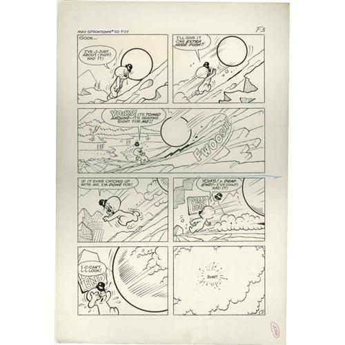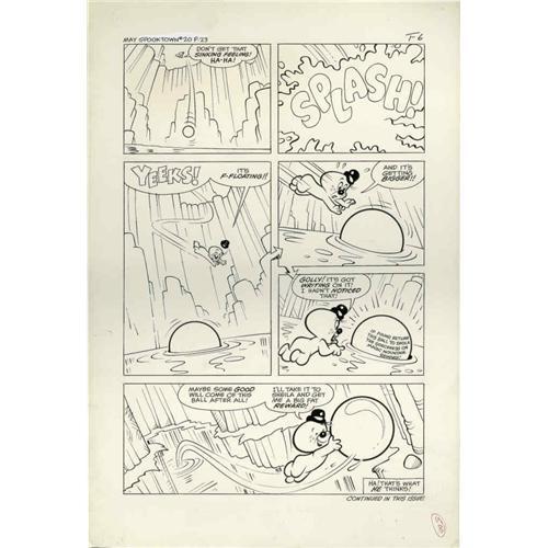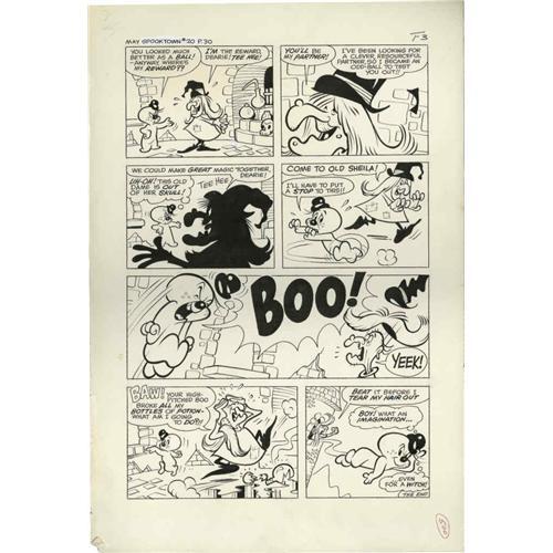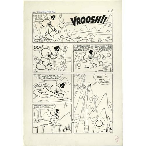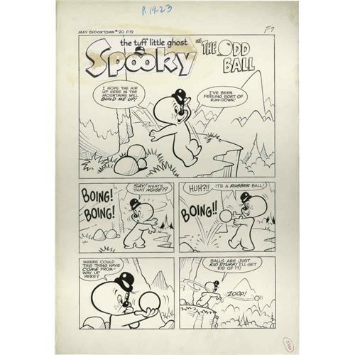 <B>Howie Post - Spooky Spooktown #20 Complete 10-page Story "The Odd Ball" Original Art (Harvey, 1967).</B></I> Spooky finds himself behind the eight-ball, or rather the odd ball in this ten page romp, drawn by Howie Post. The image area of each page measures 12" x 18", and the art is in Excellent condition. Scare up a good time with this lighthearted yarn.