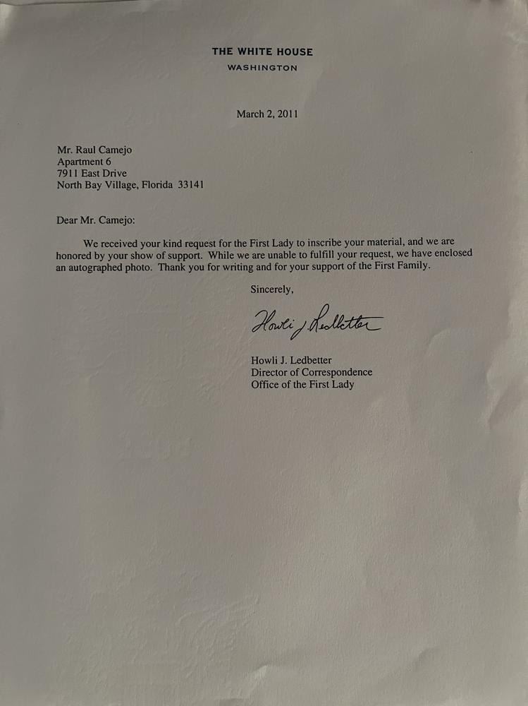 Howli J. Ledbetter facsimile signed letter. 8x11 inches