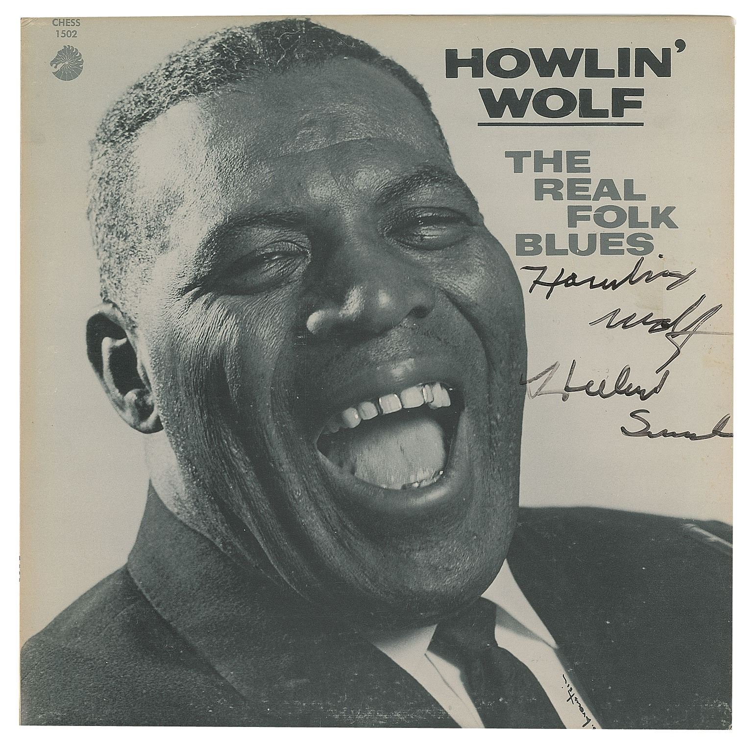 The Real Folk Blues: Howlin' Wolf album signed on the front cover by Howlin' Wolf and his guitarist Hubert Sumlin. In fine condition, with a light stain touching the signature. The record is included. A sought-after pairing of blues legends.