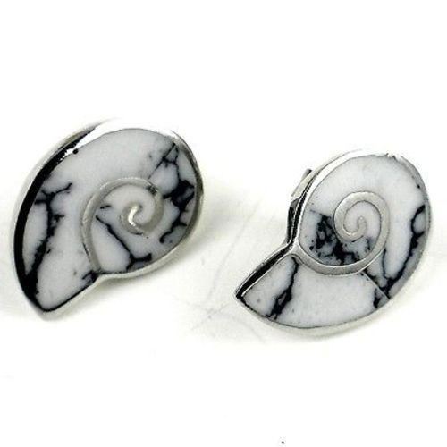 Howlite Nautilus Post Earrings - Artisana **|**|** Women artisans from Mexico embed howlite stone in alpaca silver to create these post earrings reminiscent of nautilus shells. With metal post backings #MJM401-229092