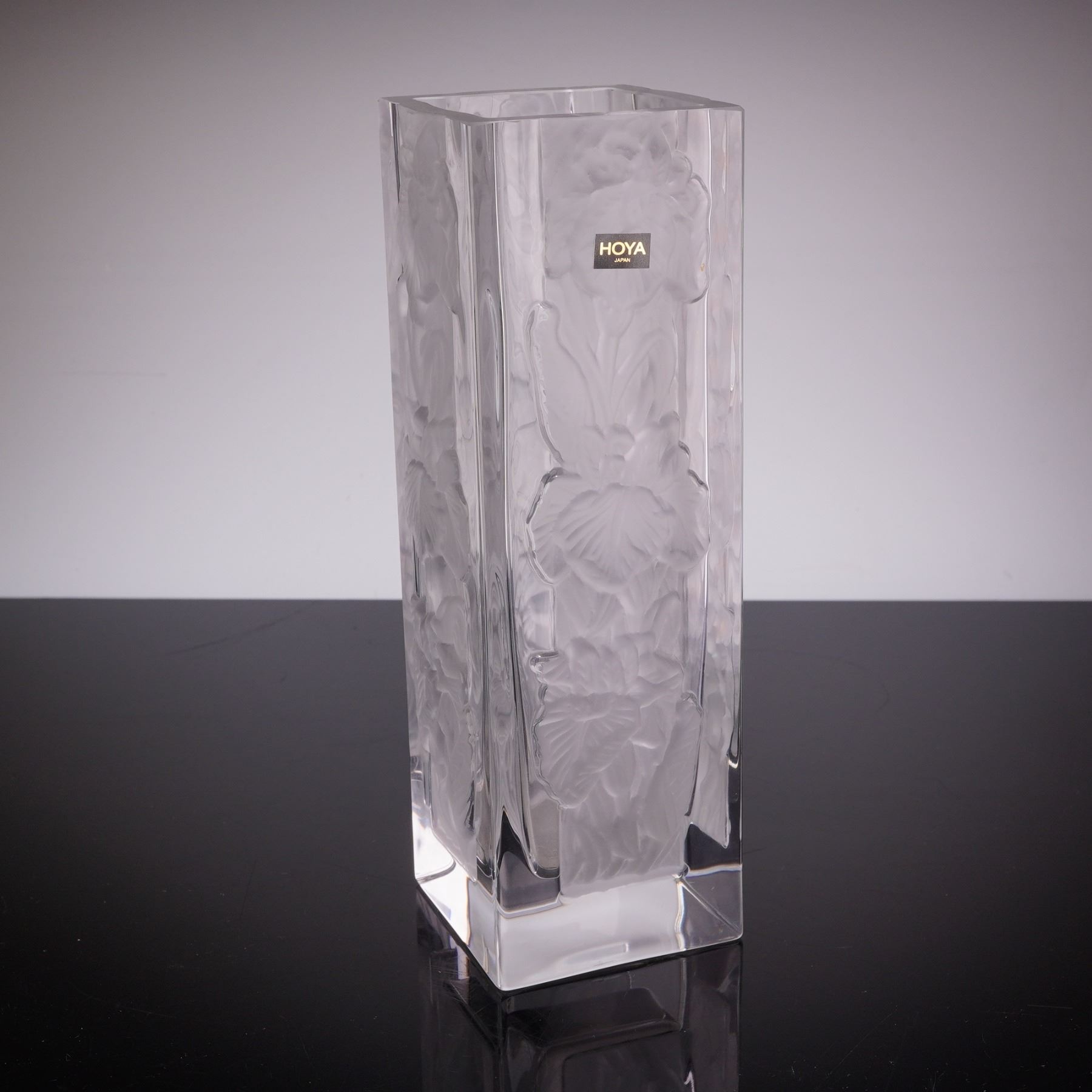 Hoya Crystal Frosted Iris Rectangular Vase, Elysian Pattern
