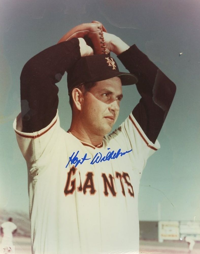 Hand-signed in blue felt-tip pen by Hoyt Wilhelm (HOF, D 2002). Autograph includes a Pristine Auction LOA and lifetime guarantee for authenticity purposes. Please note, the photo has some surface damage with missing gloss throughout (Please see photo below for details).