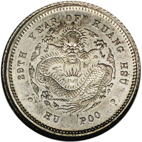 <B>Empire. Hu-Poo Pattern 1 Mace Year 29 (1903),</B></I> KM-Pn291, Kann-930, Ma-4, MS64 NGC. Fully prooflike surfaces with argent-gray and russet toning. A very rare pattern issue that is seldom offered. <B