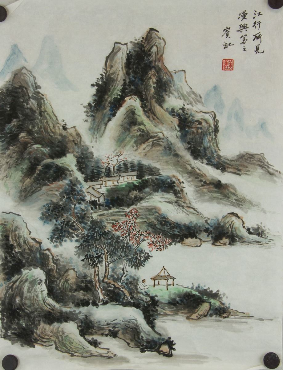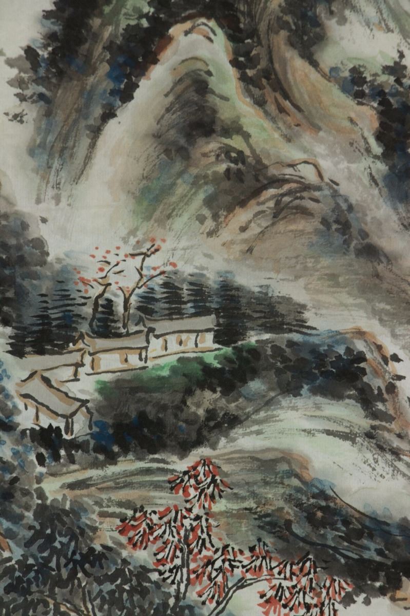 Mountainous landscape and village; Chinese ink and watercolour on paper; signed Huang Binhong (1865-1955), inscribed with 1 artist seal; 45 cm × 34 cm