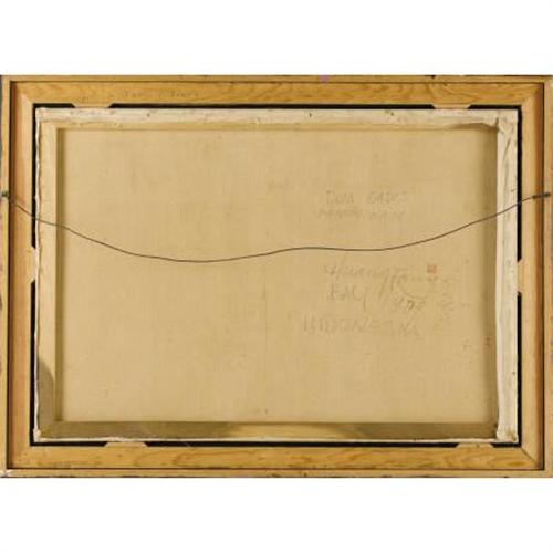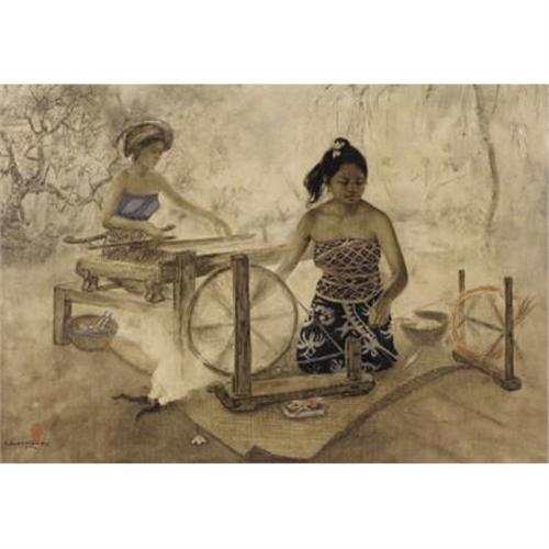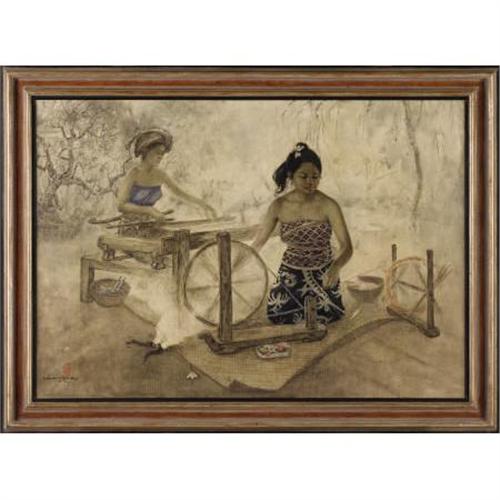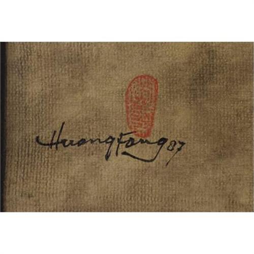 <B>Huang Fong</B></I><BR><I>Weaving</B></I>, 1987<BR>Oil on canvas<BR>Signed and dated lower left<BR>28 x 43-1/2 inches<BR><BR><b>Shipping:</b> Requires 3rd Party Shipping (<a target="_blank" href="http://www.heritageauctions.com/common/shipping.php">view shipping information</a>)