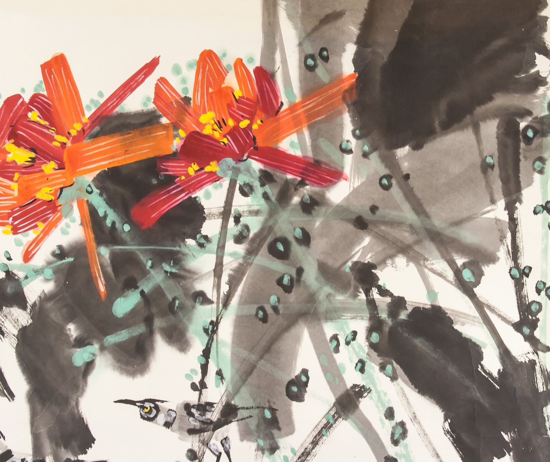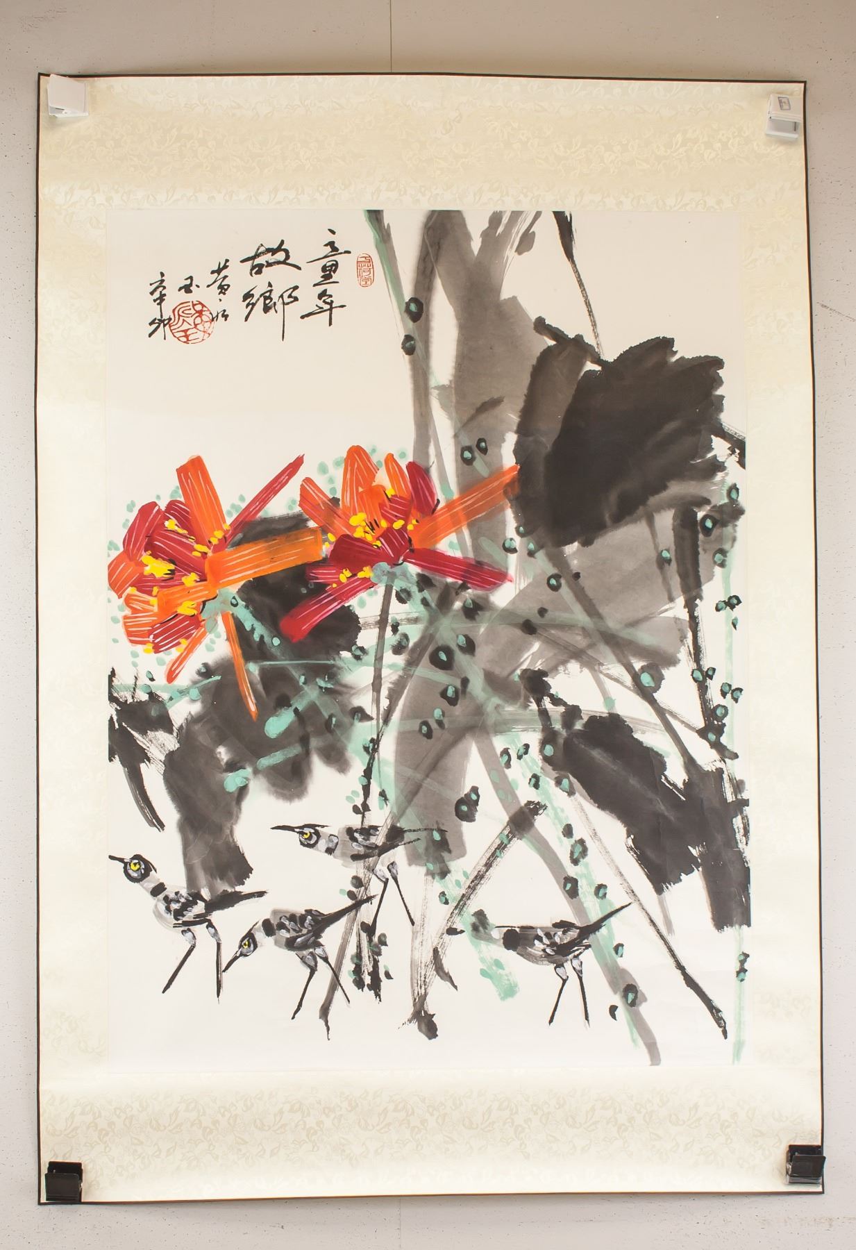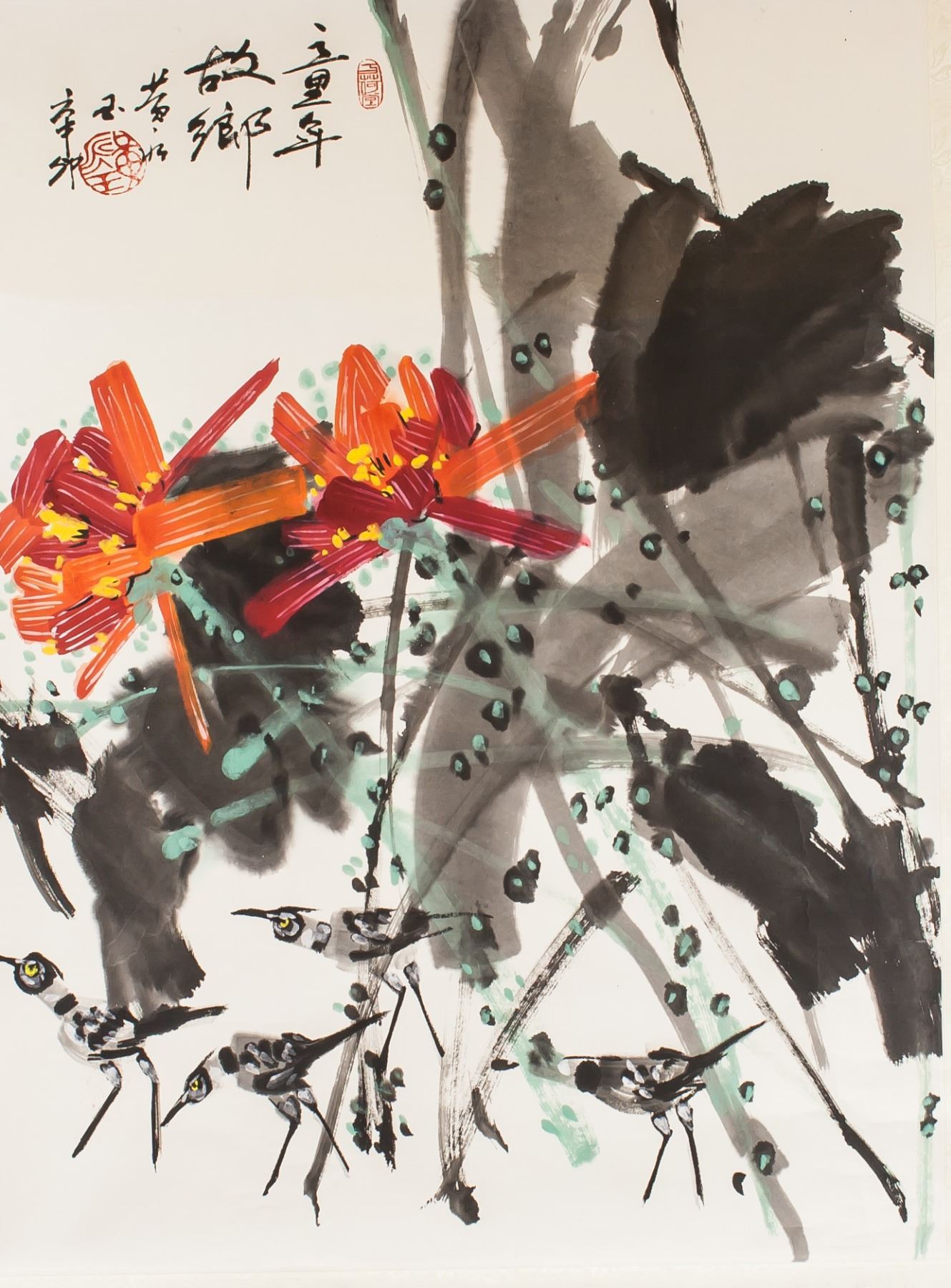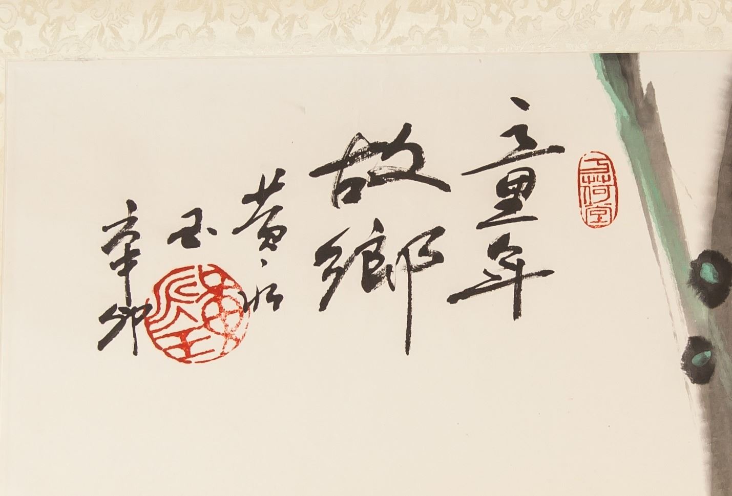 Childhood and hometown; Chinese ink and watercolour on paper; hanging scroll; signed Huang Yongyu (b.1924), legendary Chinese painter and writer; inscribed with 2 artist seals; 91 cm x 68.5 cm