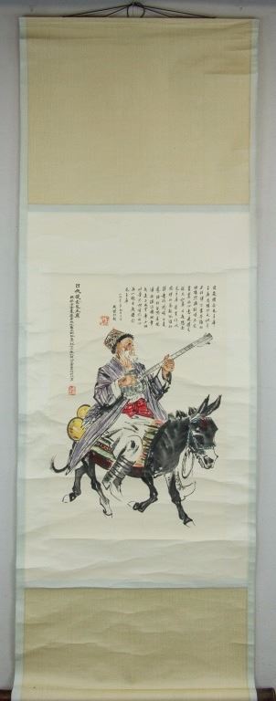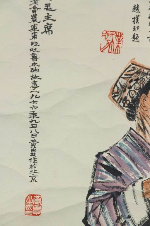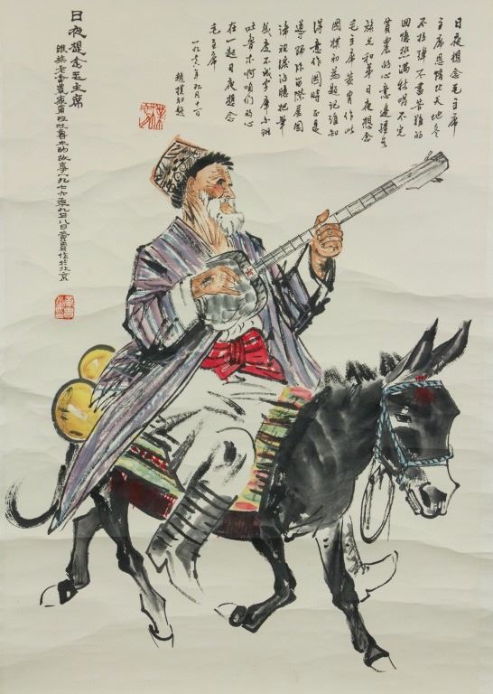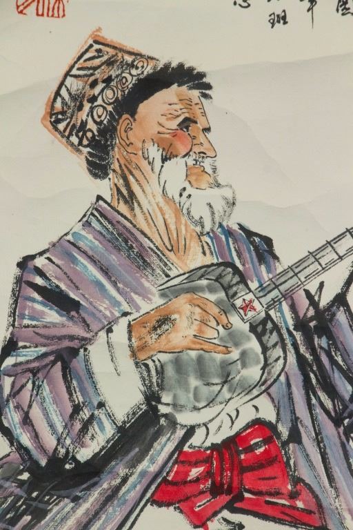 Uyghur Old missing Chairman Mao; Chinese ink and watercolour on paper; hanging scroll; signed Huang Zhou (1925-1997); inscribed with 1 artist seal; inscription written by Zhao Puchu (1907-2000); inscribed with 1 artist seal; 68 cm × 44 cm