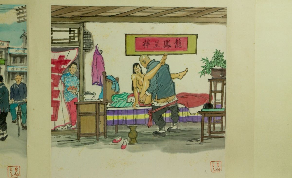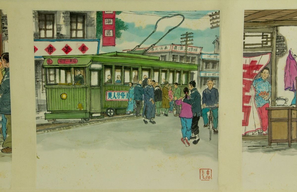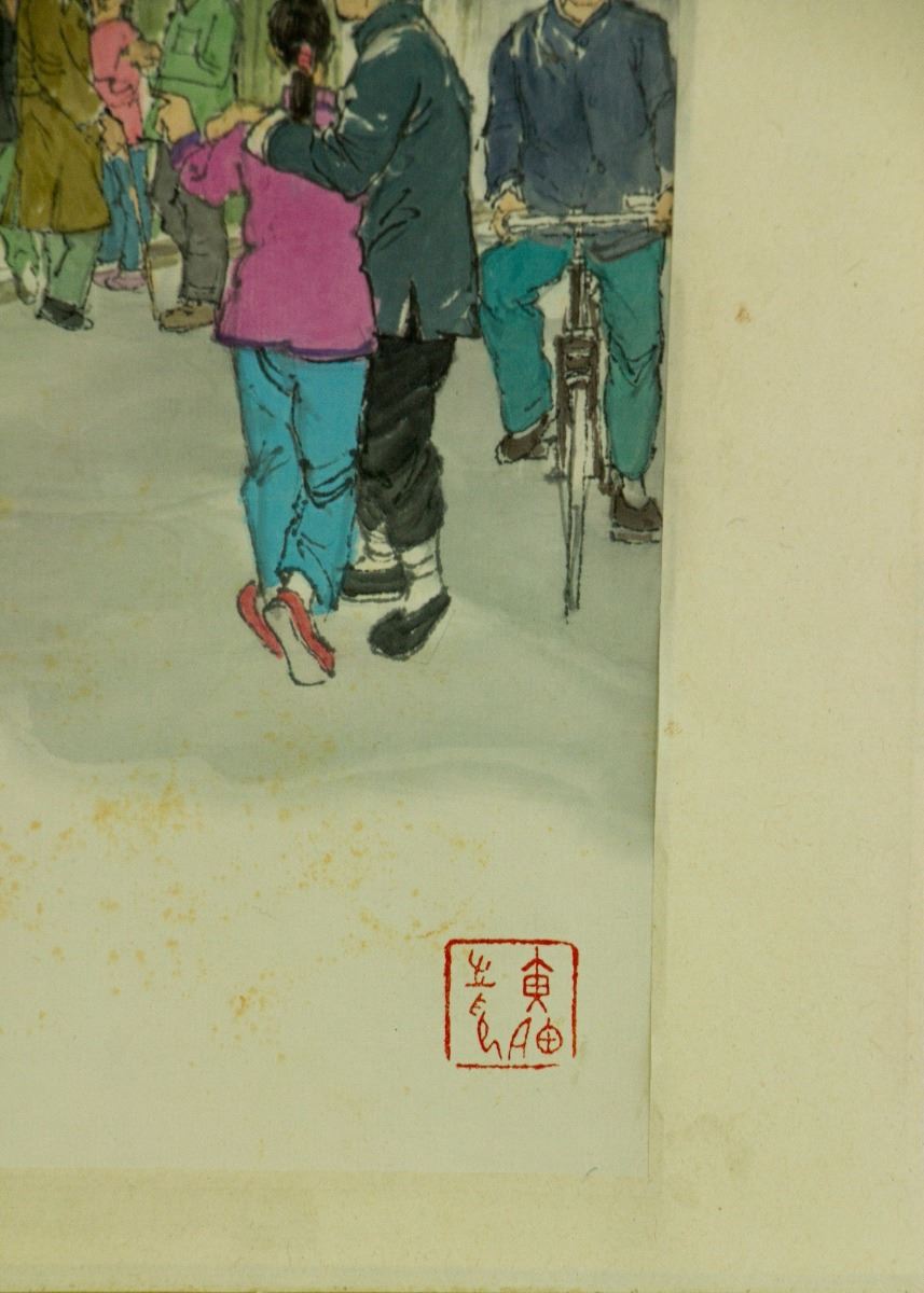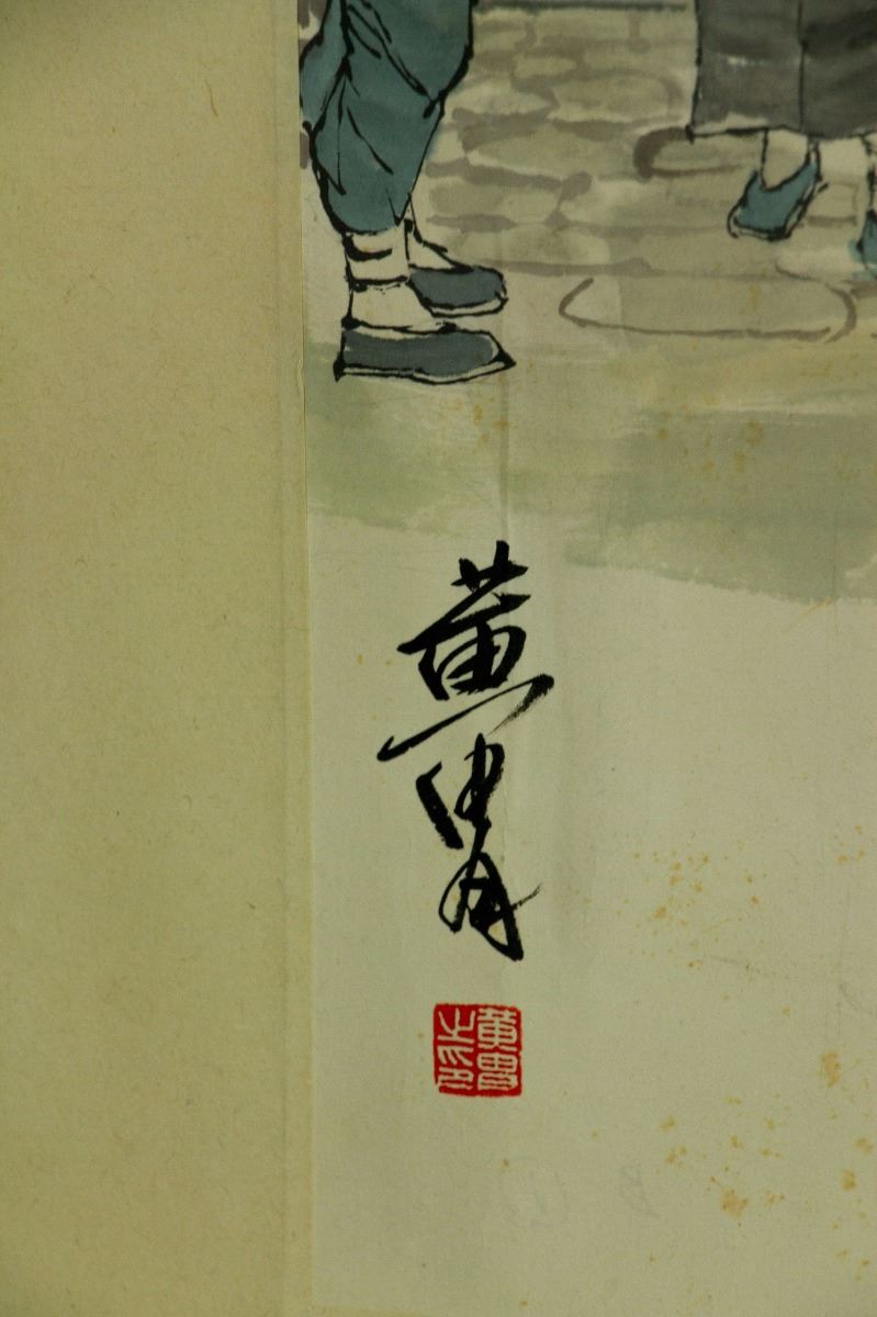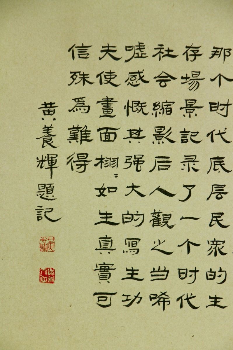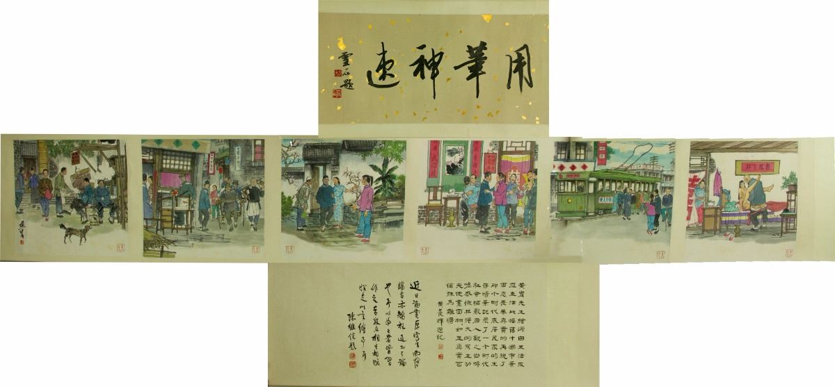 Six square paintings of figures in their daily lives; Chinese ink and watercolour on paper; hand scroll; signed Huang Zhou and inscribed with one artist seal on each painting; 37 cm × 221 cm