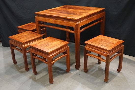 Condition as is, shown in photos. Table: 88*88*82cm; Stool: 40*40*50cm