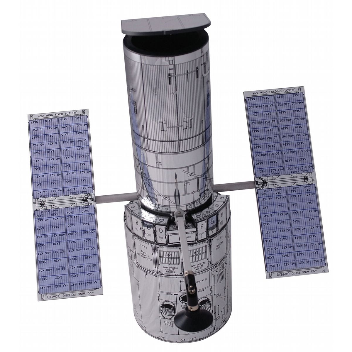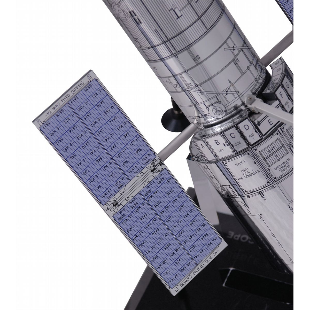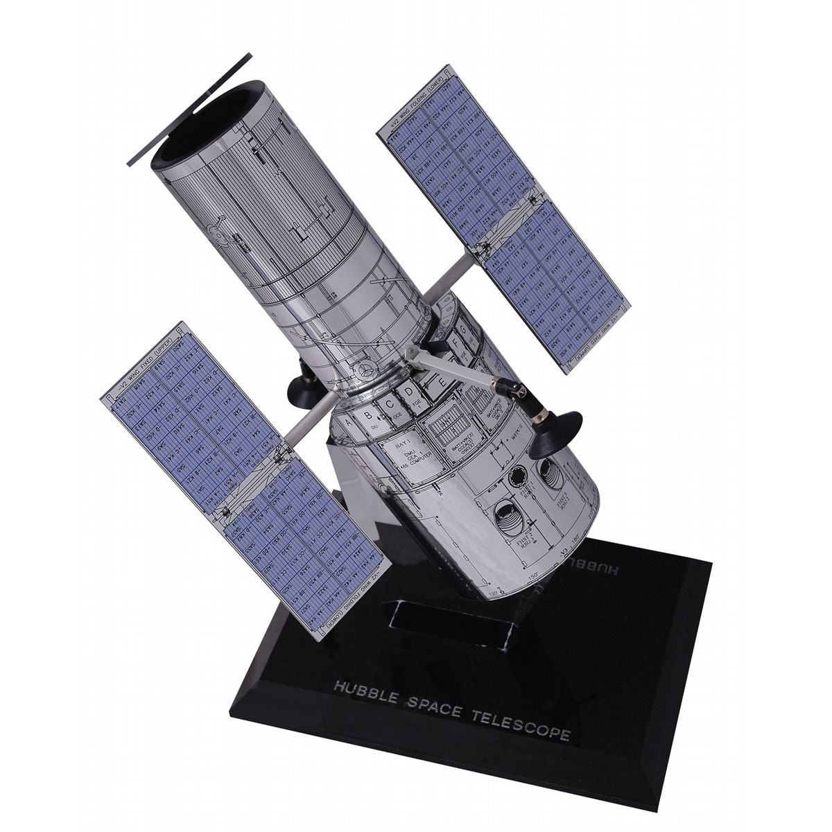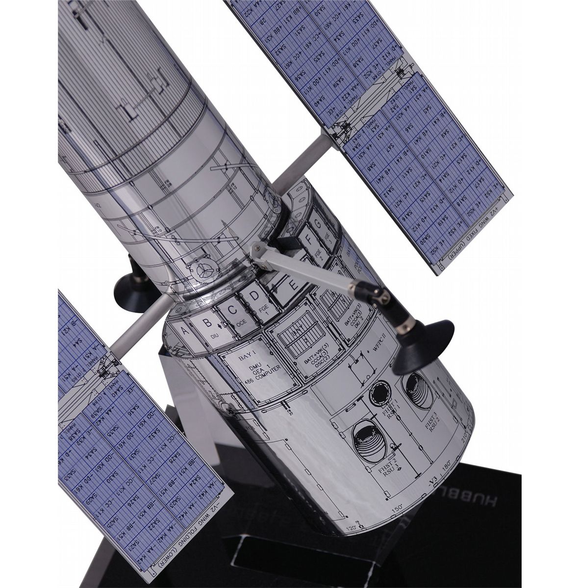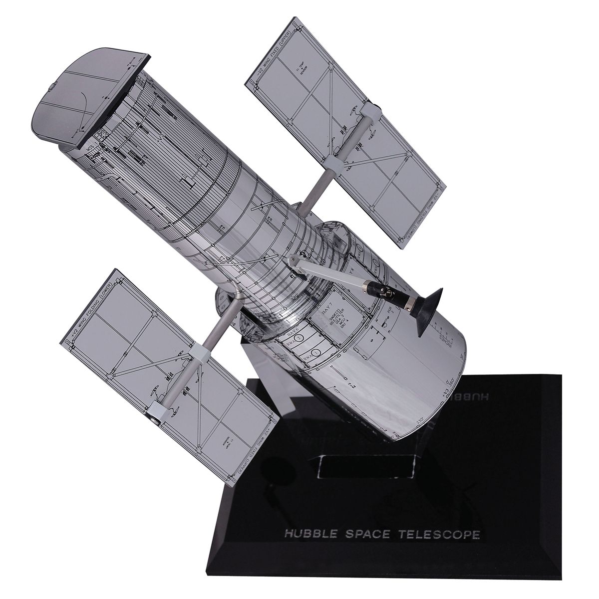 Very scarce metal-finish second generation Hubble Space Telescope NASA model. Model measures approximately 13? high, 11? wide with arrays, and has a 4? diameter at the low gain antennae. The model is incredibly detailed with every panel on the telescope and array labeled for easy reference. Telescope comes with its original 10.75 x 8.25 base which accompanied only a limited number of the models. A model such as this one can be seen being used by NASA engineers in several NASA documentaries, including the Hubble’s IMAX movie, as well as documentaries from Nova and National Geographic. In fine condition. A masterpiece of museum quality model making.