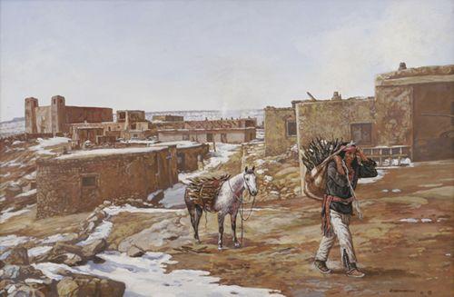 Hubert Wackerman (b. 1945). "Eastern View of Acoma". 20" x 30". Casein. (est $1,000-2,000). Provenance: Richard Flood Collection, Jackson, WY.