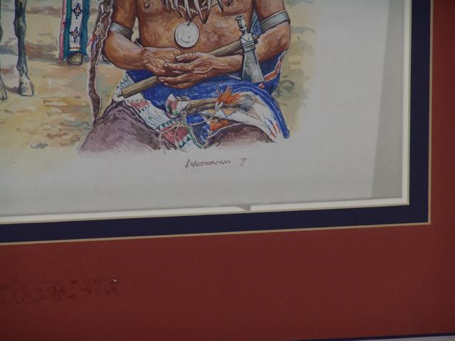 Circa 1977, Signed original watercolor - "Pawnee". 25" x 18" (31-1/2" x 23-1/2" framed)