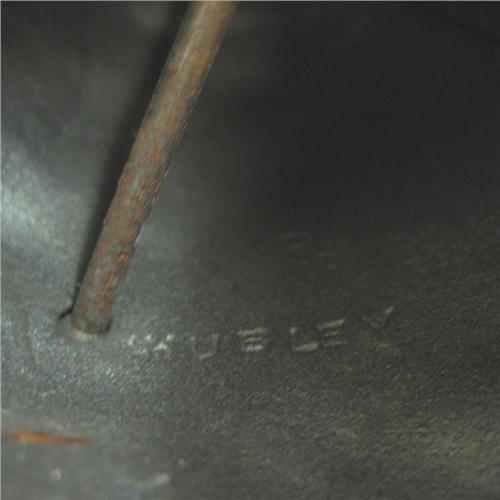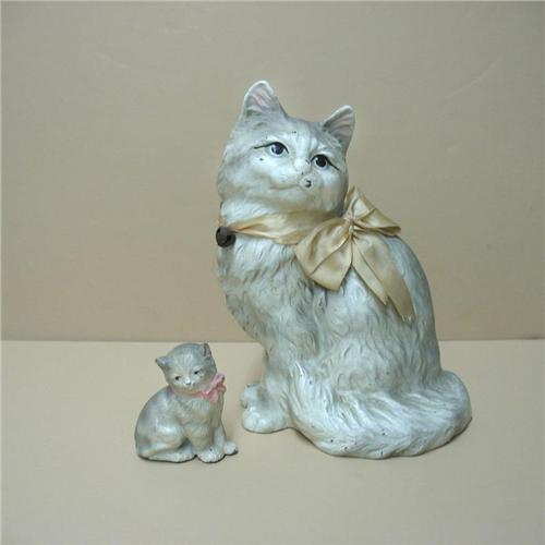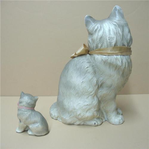 Hubley cast iron cat doorstop and a miniature painted spelter Hubley type cat; larger piece impressed Hubley inside base; early 20th C.; Hubley cat measures 9 1/4" high; smaller piece is 3" high; some paint chips and wear