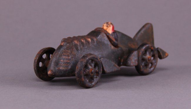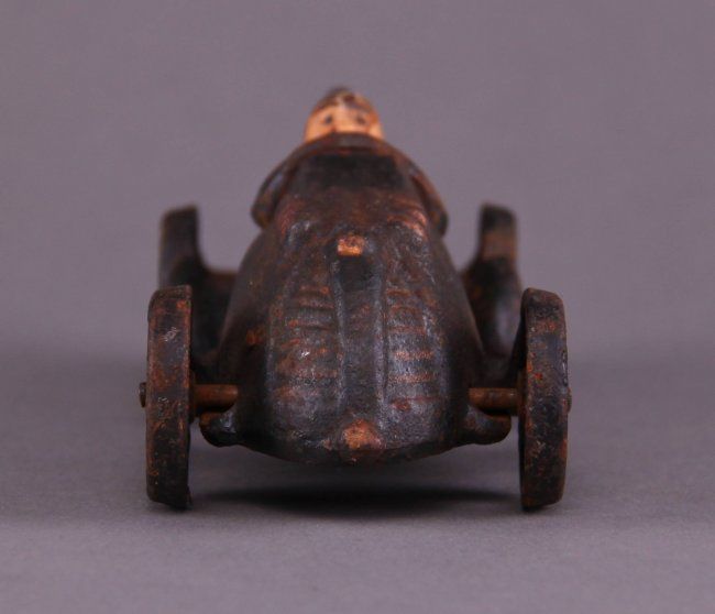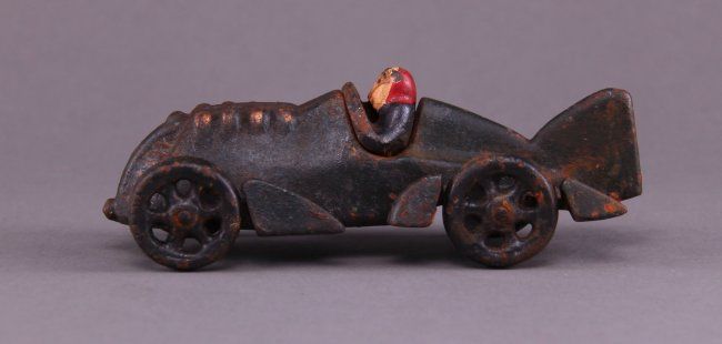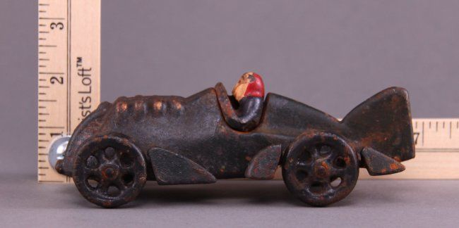 Hubley, cast iron race car. (Size: See last photo for measurement.) Photos are part of the description representing the condition report. Pangaea Auctions urges Bidder's to view all attached photos.