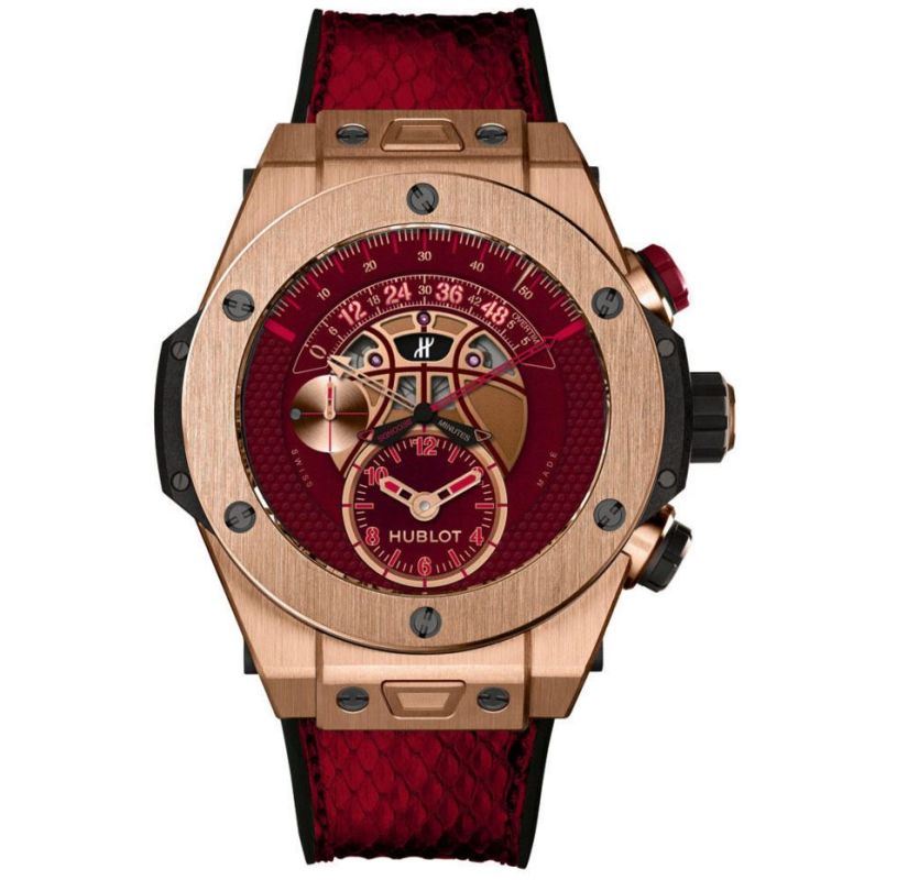 Model: 413.OX.4738.PR.KOB15 - Case,; MATERIAL18KT ROSE GOLD = [Case Diameter45.5], [BezelFixed], [Case BackSkeleton], [Water Resistant100 Meters - 330 Feet], [CrystalScratch Resistant Sapphire], Dial,; COLORBURGUNDY = Movement,; TYPEAUTOMATIC CHRONOGRAPH = [CrownScrew Down], Band,; CLASPDEPLOYMENT = [TypeBurgundy Fabric], (Usually ships in 1 to 2 weeks.)