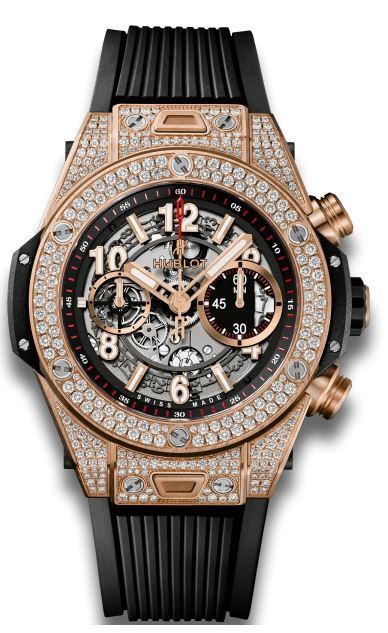 Model: 411.OX.11180.RX.1704 - CASE = [Material:18kt Rose Gold], [Case Diameter:45], [Bezel:Fixed Polished Rose Gold Set with 114 Diamonds for 1.92cts], [Case Back:Skeleton], [Crystal:Scratch Resistant Sapphire], DIAL = [Color:Skeleton], MOVEMENT = [Type:Self Winding Automatic, Chronograph Flyback with Column Wheel], [Crown:Screw Down], BAND = [Clasp:Deployment], [Type:Black Rubber], (Usually ships in 1 to 2 weeks.)