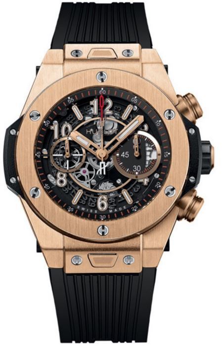 Model: 411.OX.1180.RX.1904 - CASE = [Material:Polished 18kt Gold], [Case Diameter:45], [Bezel:Fixed], [Case Back:Skeleton], [Water Resistant:100 Meters - 330 Feet], [Crystal:Scratch Resistant Sapphire], DIAL = [Color:Black], MOVEMENT = [Type:Automatic Chronograph], BAND = [Clasp:Deployment], [Type:Black Rubber], (Usually ships in 1 to 2 weeks.)