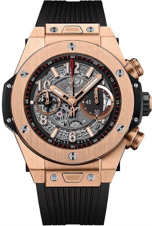 Model: 411.OX.1180.RX - CASE = [Material:18kt Rose Gold], [Case Diameter:45], [Bezel:Fixed], [Case Back:Skeleton], [Water Resistant:100 Meters - 330 Feet], [Crystal:Scratch Resistant Sapphire], DIAL = [Color:Skeleton], MOVEMENT = [Type:Automatic Chronograph], [Crown:Screw Down], BAND = [Clasp:Push Down Foldover], [Type:Black Rubber], (Usually ships in 1 to 2 business days.)
