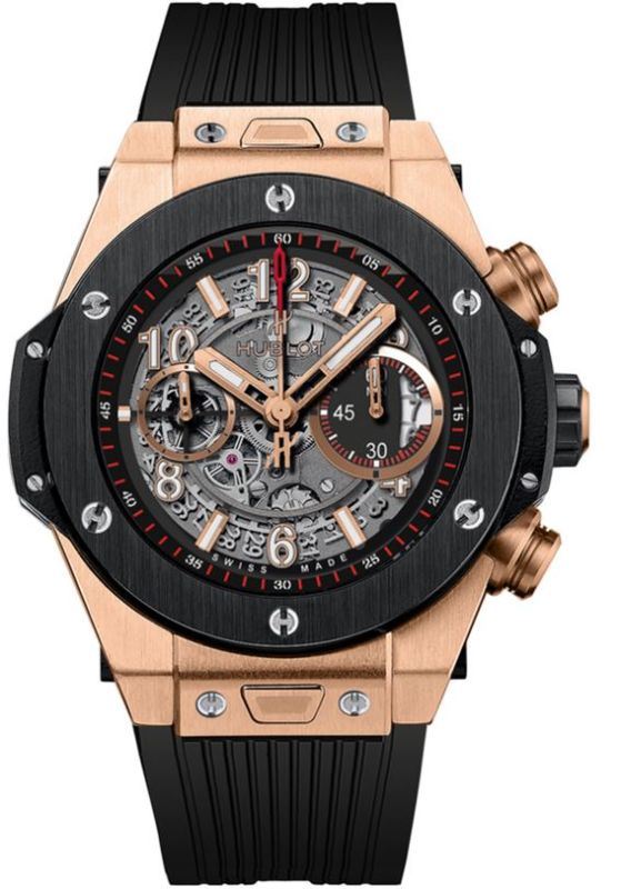 Model: 411.OM.1180.RX - CASE = [Material:18kt Rose Gold], [Case Diameter:45], [Bezel:Fixed], [Case Back:Skeleton], [Water Resistant:100 Meters - 330 Feet], [Crystal:Scratch Resistant Sapphire], DIAL = [Color:Skeleton], MOVEMENT = [Type:Automatic Chronograph], [Crown:Screw Down], BAND = [Clasp:Push Button Folding], [Type:Black Rubber], (Usually ships in 1 to 2 weeks.)