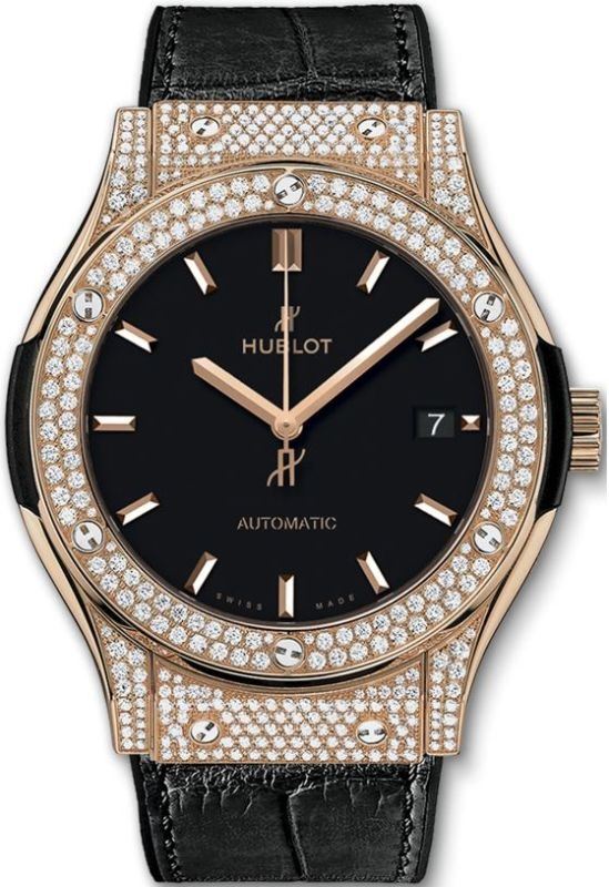 Model: 511.OX.1181.LR.1704 - CASE = [Material:Polished 18kt Rose Gold Set with 126 Diamonds for 1.41cts], [Case Diameter:45], [Bezel:Fixed Polished 18kt Rose Gold Set with 126 Diamonds for 1.24cts], [Case Back:Skeleton], [Water Resistant:50 Meters - 165 Feet], [Crystal:Scratch Resistant Sapphire],; DIAL = [Color:Black],; MOVEMENT = [Type:Self Winding Automatic, 42 Hour Power Reserve], [Crown:Push In],; BAND = [Clasp:Deployment], [Type:Black Leather], (Usually ships in 1 to 2 weeks.)