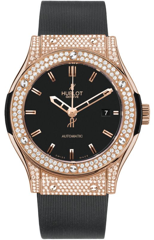 Model: 511.PX.1180.RX.1704 - CASE = [Material:18kt Rose Gold], [Case Diameter:45], [Case Back:See-thru Sapphire crystal], [Water Resistant:100 Meters - 330 Feet], [Crystal:Scratch Resistant Sapphire], DIAL = [Color:Black], MOVEMENT = [Type:Automatic Self Winding], BAND = [Clasp:Push Button Foldover], [Type:Black Rubber], (Usually ships in 1 to 2 weeks.)