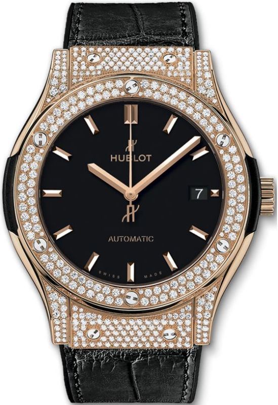 Model: 511.OX.1181.LR.1704 - CASE = [Material:Polished 18kt Rose Gold Set with 126 Diamonds for 1.41cts], [Case Diameter:45], [Bezel:Fixed Polished 18kt Rose Gold Set with 126 Diamonds for 1.24cts], [Case Back:Skeleton], [Water Resistant:50 Meters - 165 Feet], [Crystal:Scratch Resistant Sapphire], DIAL = [Color:Black], MOVEMENT = [Type:Self Winding Automatic, 42 Hour Power Reserve], [Crown:Push In], BAND = [Clasp:Deployment], [Type:Black Leather], (Usually ships in 1 to 2 weeks.)