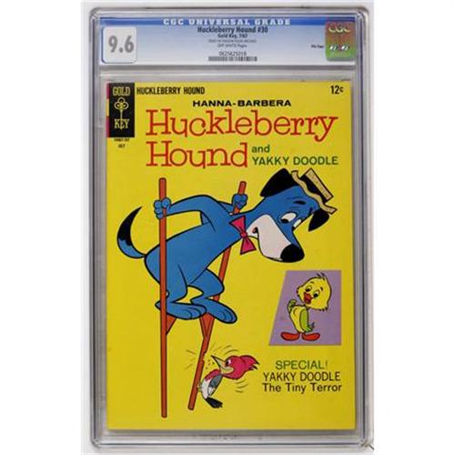 <B>Huckleberry Hound #30 File Copy (Gold Key, 1967) CGC NM+ 9.6 Off-white pages.</B></I> CGC notes, "From the Random House Archives." Overstreet 2007 NM- 9.2 value = $48. CGC census 10/07: 6 in 9.6, none higher.<BR><BR><b>Shipping:</b> Comics - Slabbed (certified) (<a target="_blank" href="http://www.heritageauctions.com/common/shipping.php">view shipping information</a>)