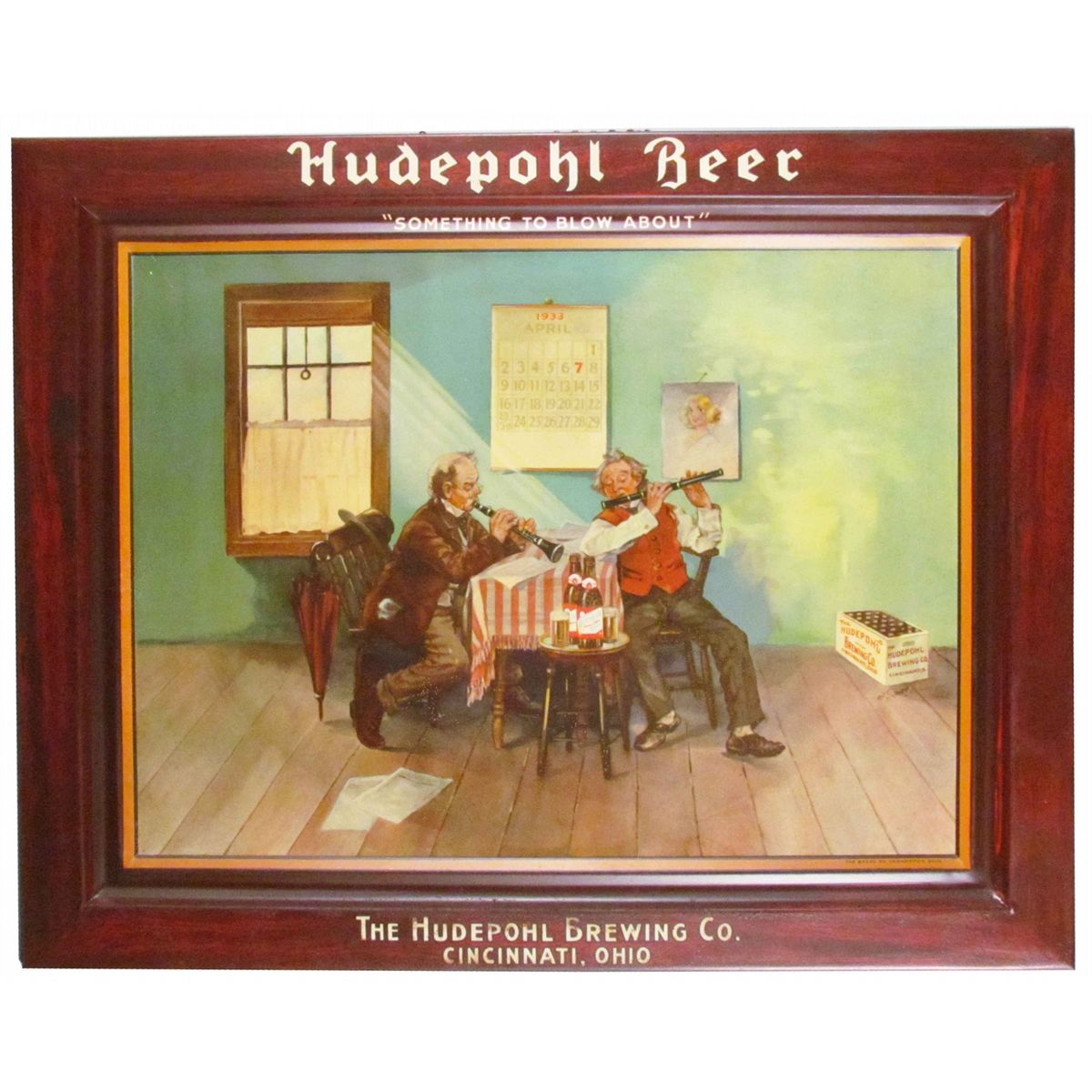 Hudepohl Beer Self Framed Tin Sign. The Hudephol Brewing Co. Cincinnati, O. Professionally restored. 19 1/4 X 15 1/2 inches.