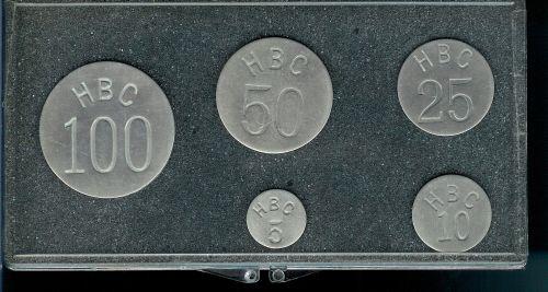 Hudson Bay Company Aluminium set. Struck in 1946. HBC 5,10,25,50,100/Uniface included, Gingras 285 to 285d. A complete and very popular set.