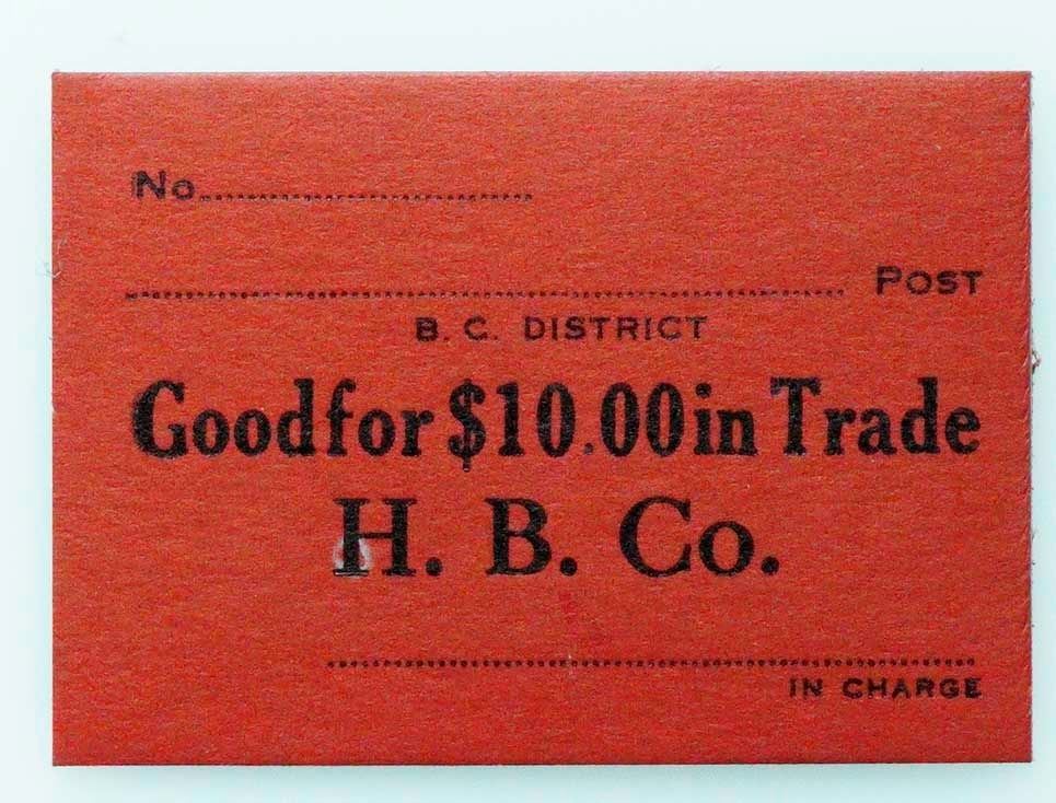 Hudson Bay Company CH-BC10-18-10Ra, Good for $10.00 in trade. Red Cardboard. Gingras 386.