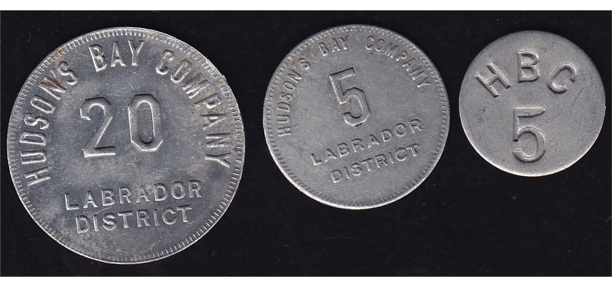 Hudson Bay Company - Eastern Arctic, Labrador District, uniface tokens, 5 and 20, said to replace the Parson's tokens around 1919, also included is an Eastern Arctic decimal token for 5 cents, uniface, issued in 1946 and discontinued in 1962. 3 Pcs.