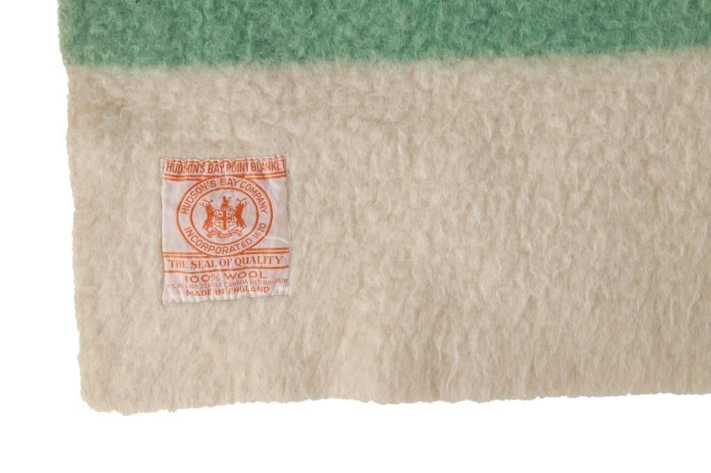 Featured in this lot is a Hudson Bay Four Point wool trade blanket. The blanket shows a beautifully crafted wool construction to this blanket all done in a iconic Hudson Bay design with five points along the side of the blanket. The number of points indicates the size of the blanket. Although the points did not originally assign a value to the blanket, over time, traders used the points to determine how many beaver pelts it could be traded for. At first, one point equaled one beaver pelt. By the early 1700s, the blankets represented more than half of the items traded for animal hides. The condition of this Hudson Bay blanket is good with no obvious signs of damage and shows good overall condition. The measurements of this blanket are 78"L x 62"W.*
