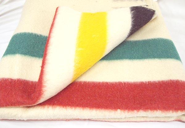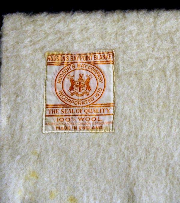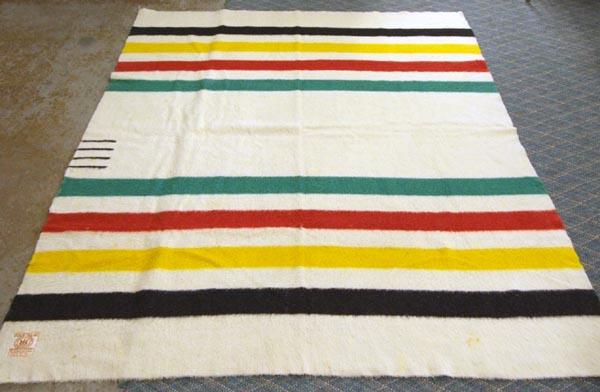 Hudson Bay Point Blanket, some stains, measures approx. 70'' x 90''. SHI $25.