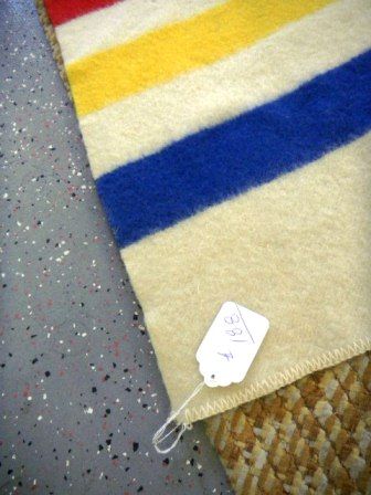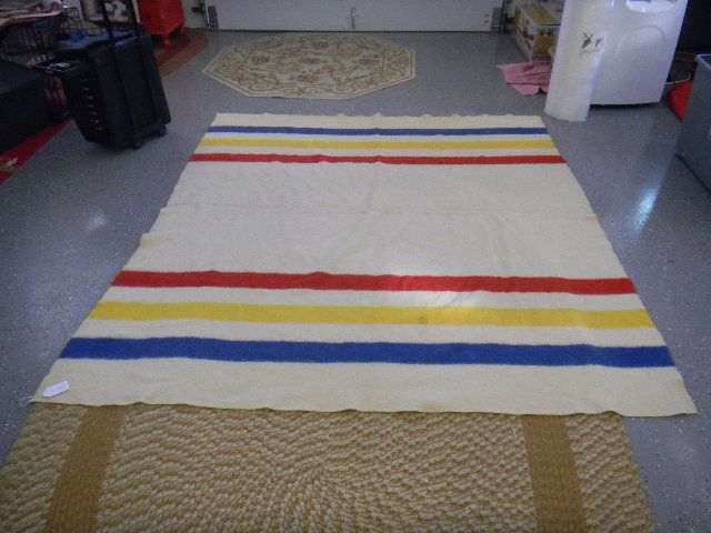 Hudson bay style blanket. The blanket has one stain and measuring approximately 5 by 6 feet. Shipping $18.00