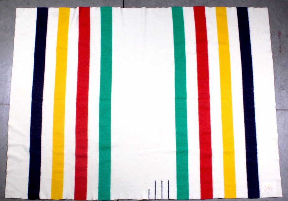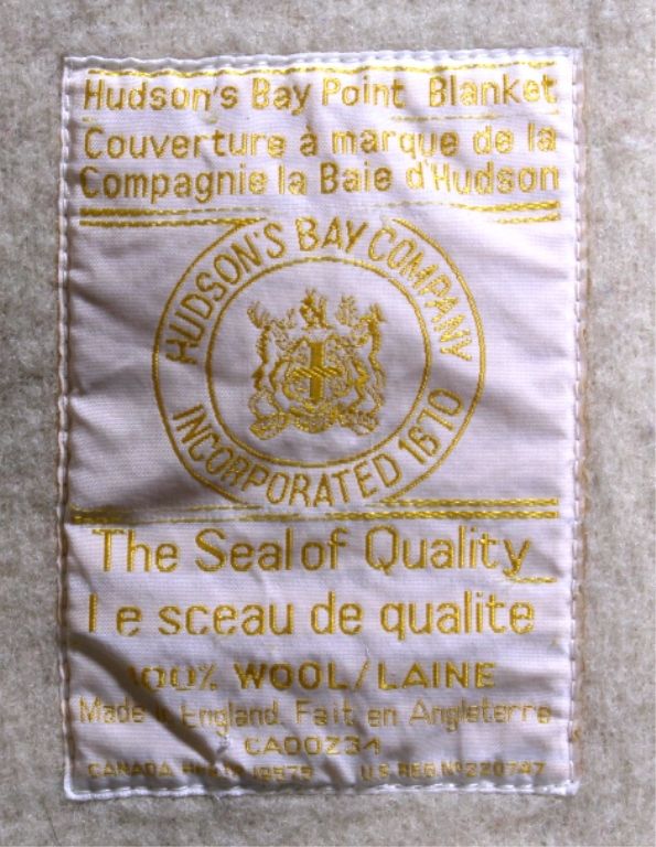 This lot features a Hudson Bay trade blanket. This blanket is a "three and a half" point, meaning that it would have been traded for that many beaver pelts. It is in excellent condition.