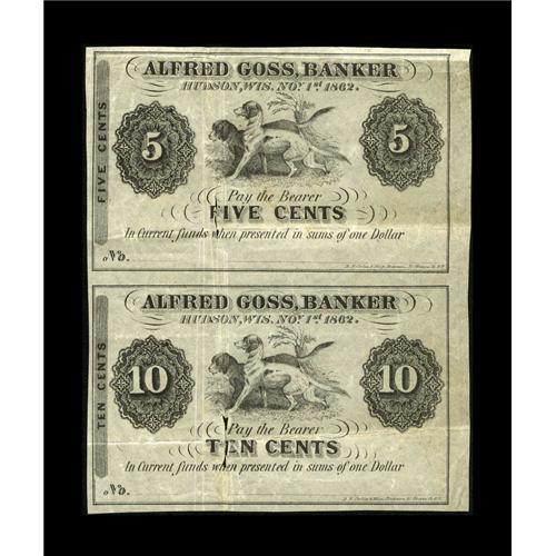 Hudson, WI- Alfred Goss 5¢-10¢ Nov. 1, 1862 Uncut Pair